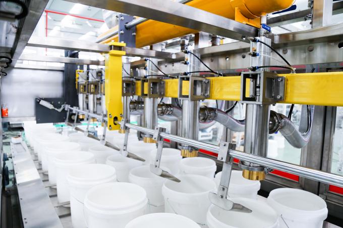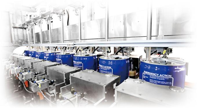 The filling head can generally be lifted up and down, fixed in the horizontal direction, and correspond to the scales below. Different barrels are transported to the center of the scale by the transport positioning device (to adapt to different types of barrel filling).