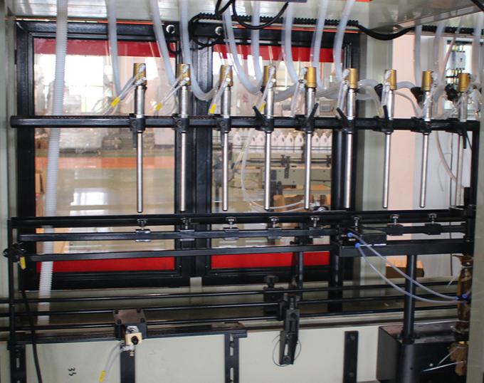 1. This machine is linear gravity filling machine (time* rate of flow), automatically controlled by PLC and touch screen, with the advantages of advanced structure, stable working, low noise, widely adjusting range, fast filling speed; applicable to water aqua, emulsion, and some other no viscous material ‘s qualitative filling; automatically complete bottle inletting, qualitative filling, and bottle outlet.