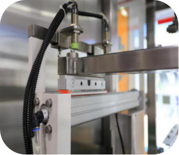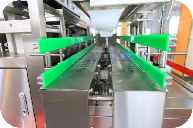 The conveyor frame in and out of the box is made of SUS304 stainless steel. The railings on both sides are adjustable and can be applied to different box types. The railings are aluminum profile outsourcing polyethylene material protection rods, and the surface is smooth without burr and will not damage the box.